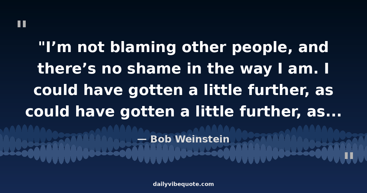 "I’m not blaming other people, and there’s no shame in the way I am. I could have gotten a little further, as we all could have, but that’s the way life is."