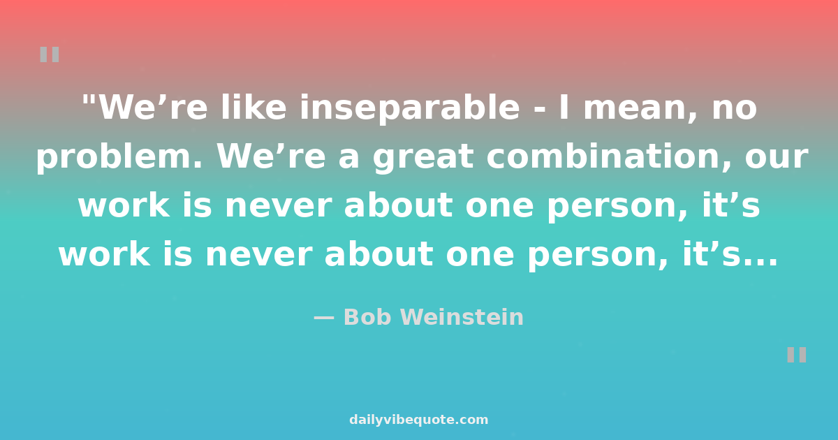 "We’re like inseparable - I mean, no problem. We’re a great combination, our work is never about one person, it’s always about running ideas past each other, listening to each other. We’ve been like this for our whole lives. We’re not a one-man band."