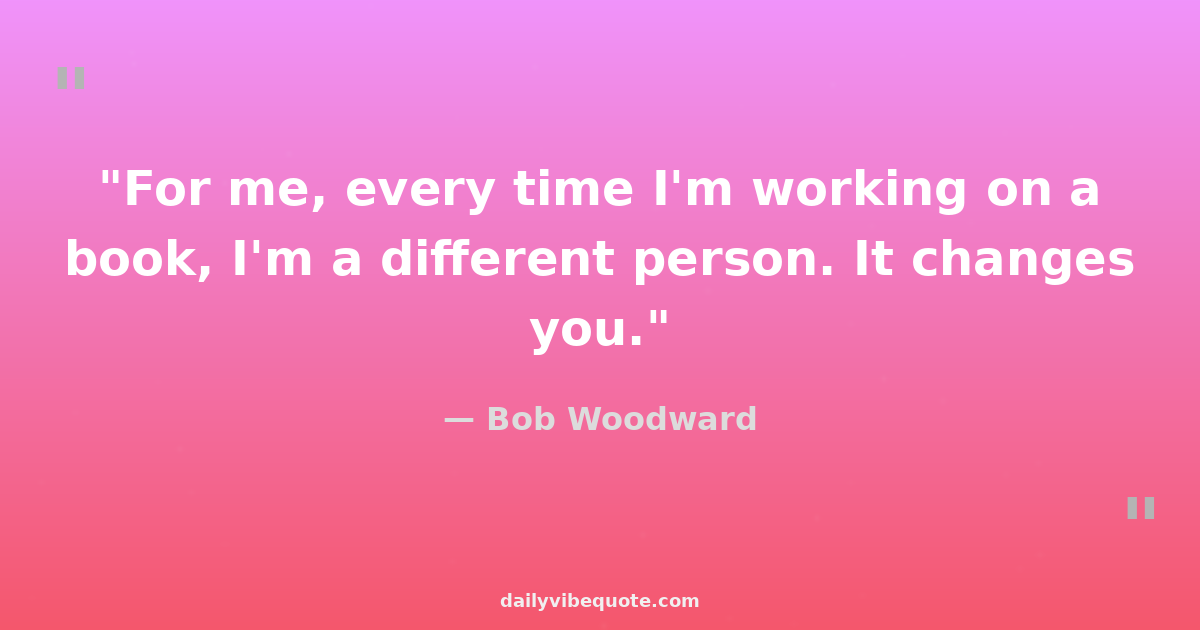 "For me, every time I'm working on a book, I'm a different person. It changes you."