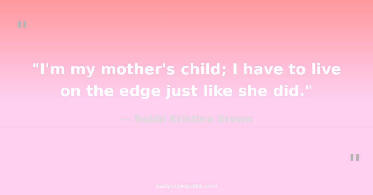 "I'm my mother's child; I have to live on the edge just like she did."