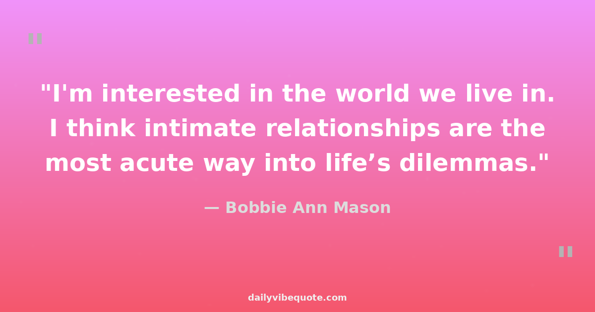 "I'm interested in the world we live in. I think intimate relationships are the most acute way into life’s dilemmas."