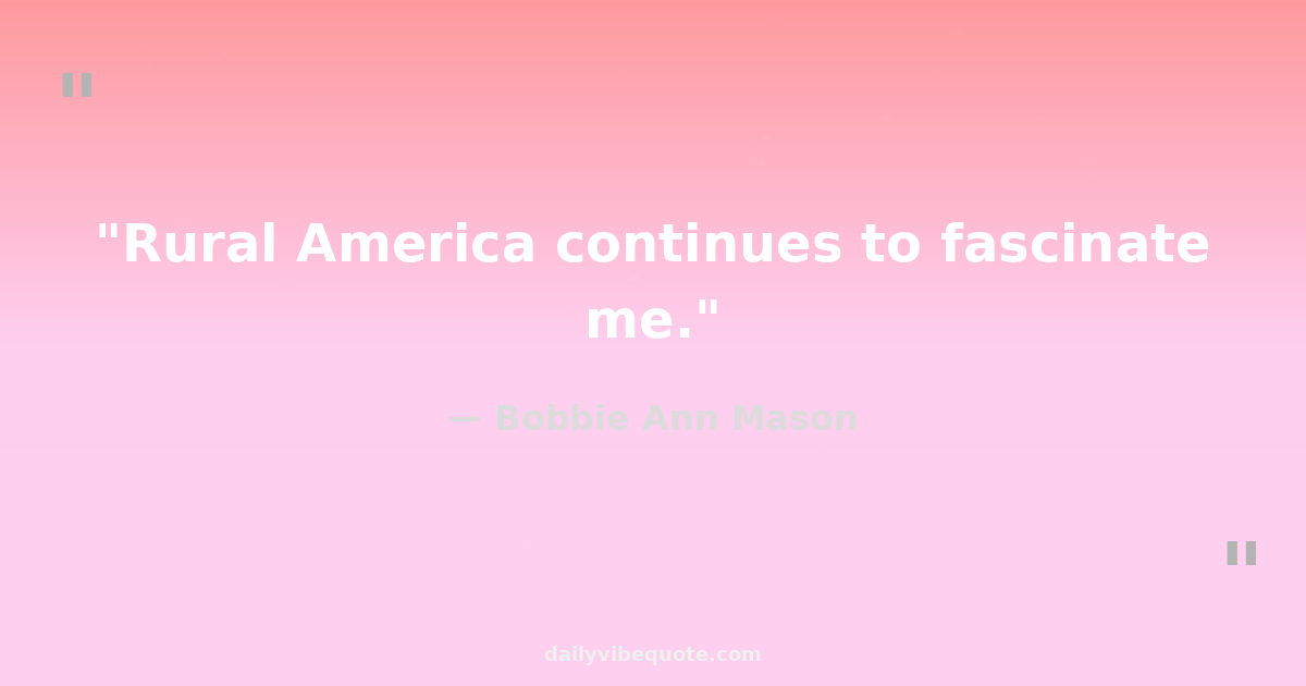 "Rural America continues to fascinate me."