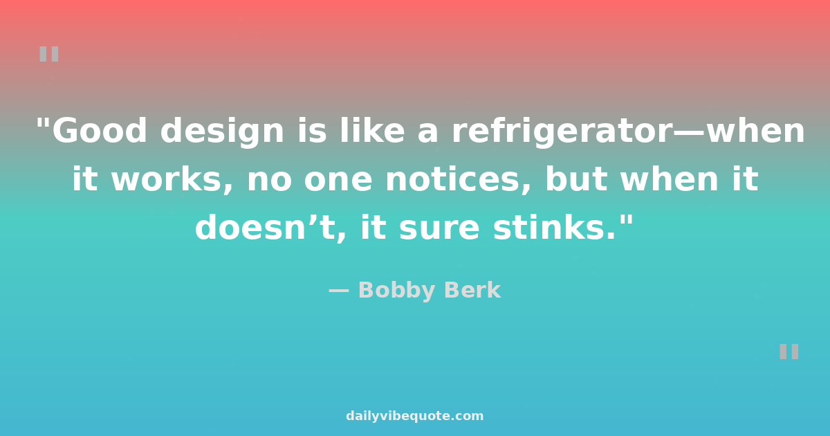 "Good design is like a refrigerator—when it works, no one notices, but when it doesn’t, it sure stinks."