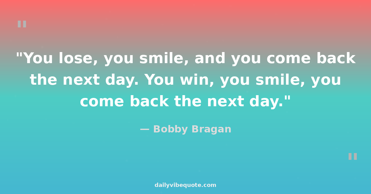 "You lose, you smile, and you come back the next day. You win, you smile, you come back the next day."