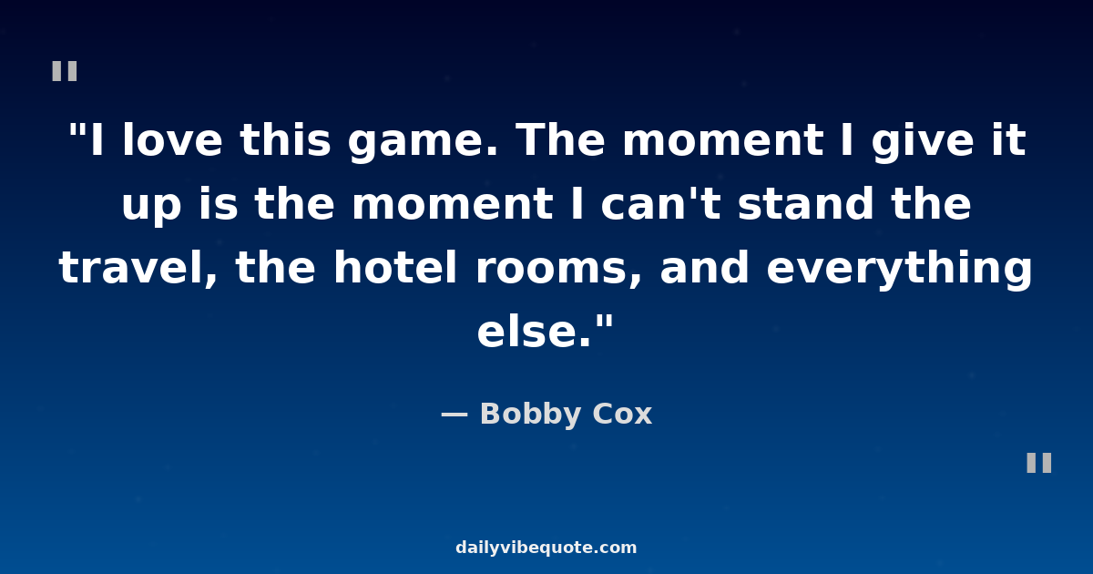 "I love this game. The moment I give it up is the moment I can't stand the travel, the hotel rooms, and everything else."