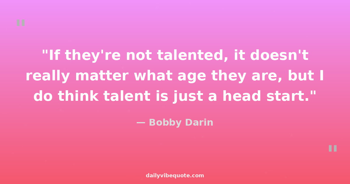 "If they're not talented, it doesn't really matter what age they are, but I do think talent is just a head start."