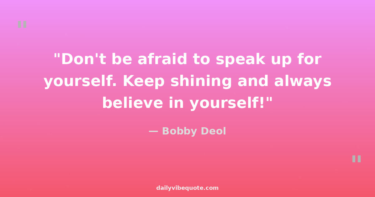 "Don't be afraid to speak up for yourself. Keep shining and always believe in yourself!"