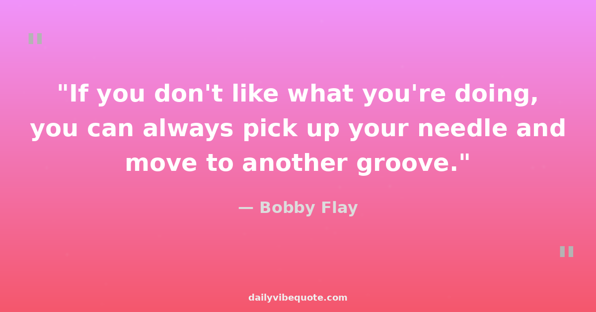 "If you don't like what you're doing, you can always pick up your needle and move to another groove."