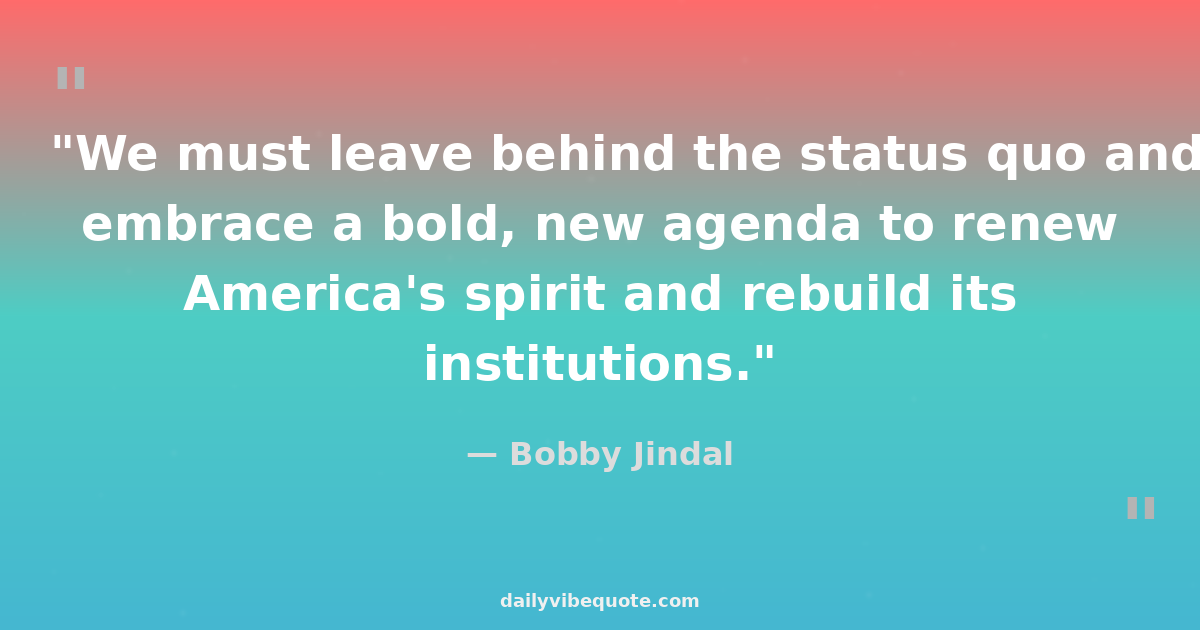 "We must leave behind the status quo and embrace a bold, new agenda to renew America's spirit and rebuild its institutions."