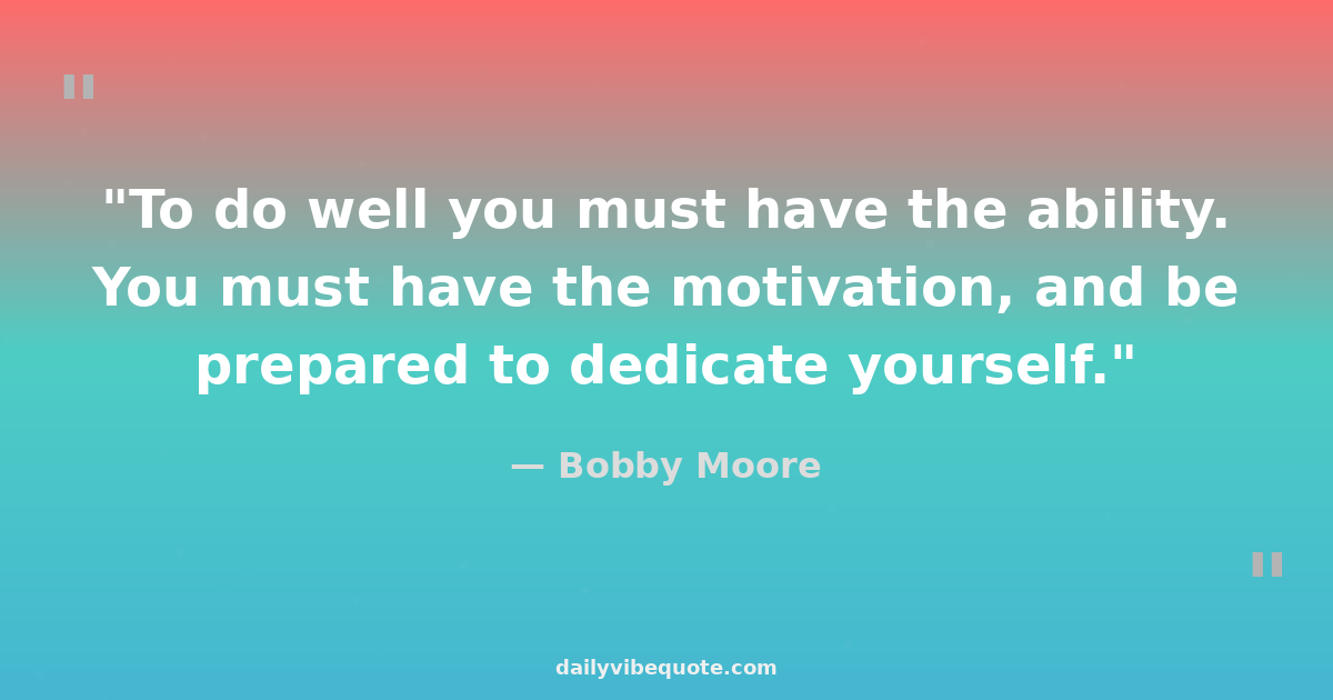 "To do well you must have the ability. You must have the motivation, and be prepared to dedicate yourself."