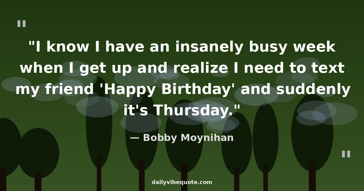 "I know I have an insanely busy week when I get up and realize I need to text my friend 'Happy Birthday' and suddenly it's Thursday."