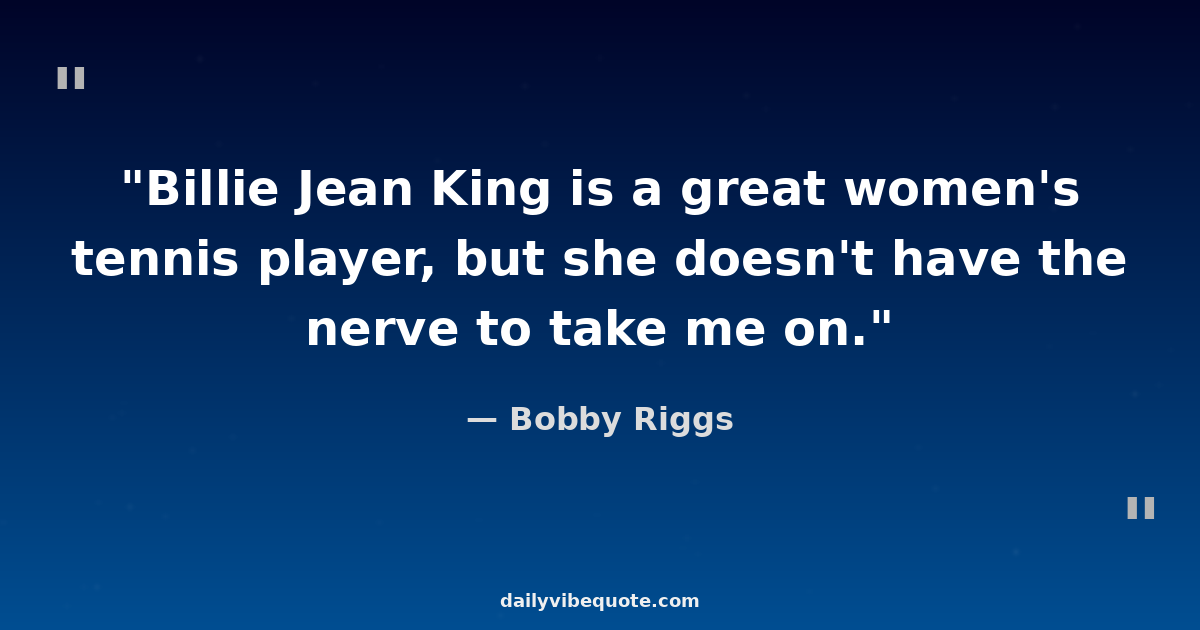 "Billie Jean King is a great women's tennis player, but she doesn't have the nerve to take me on."