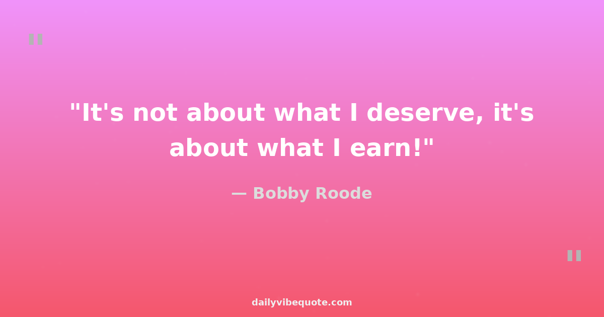 "It's not about what I deserve, it's about what I earn!"