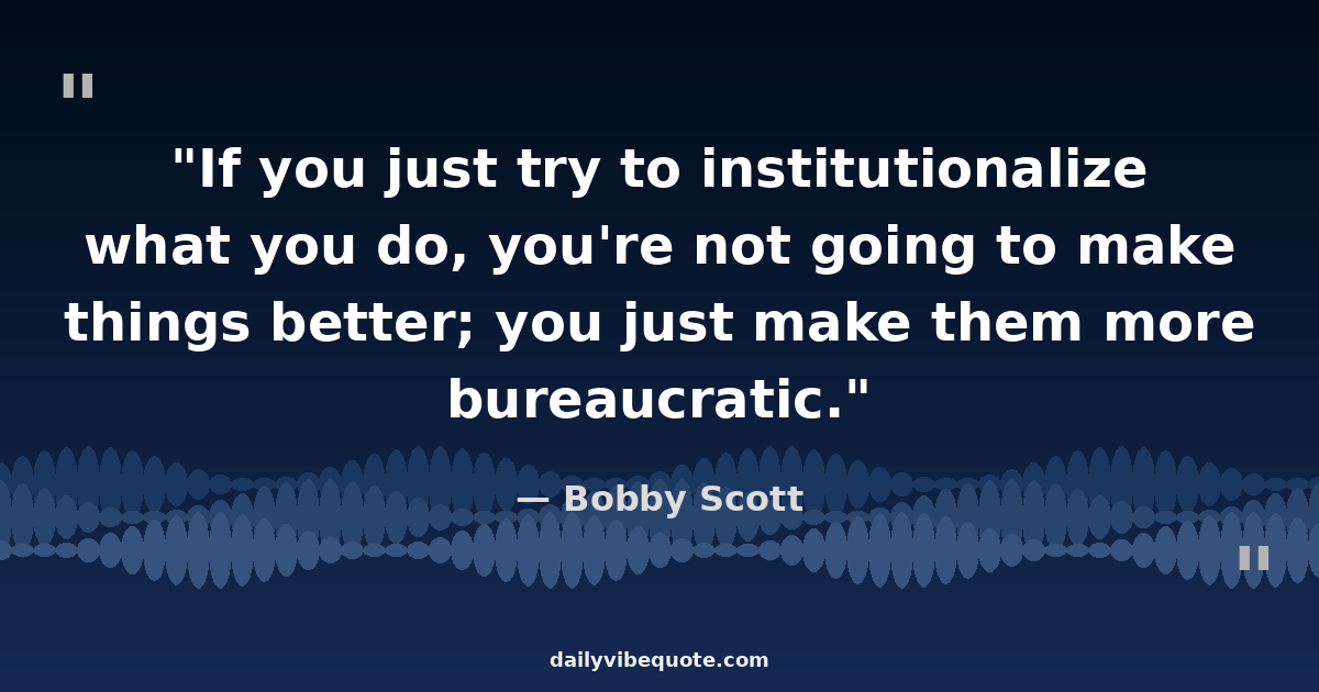 "If you just try to institutionalize what you do, you're not going to make things better; you just make them more bureaucratic."