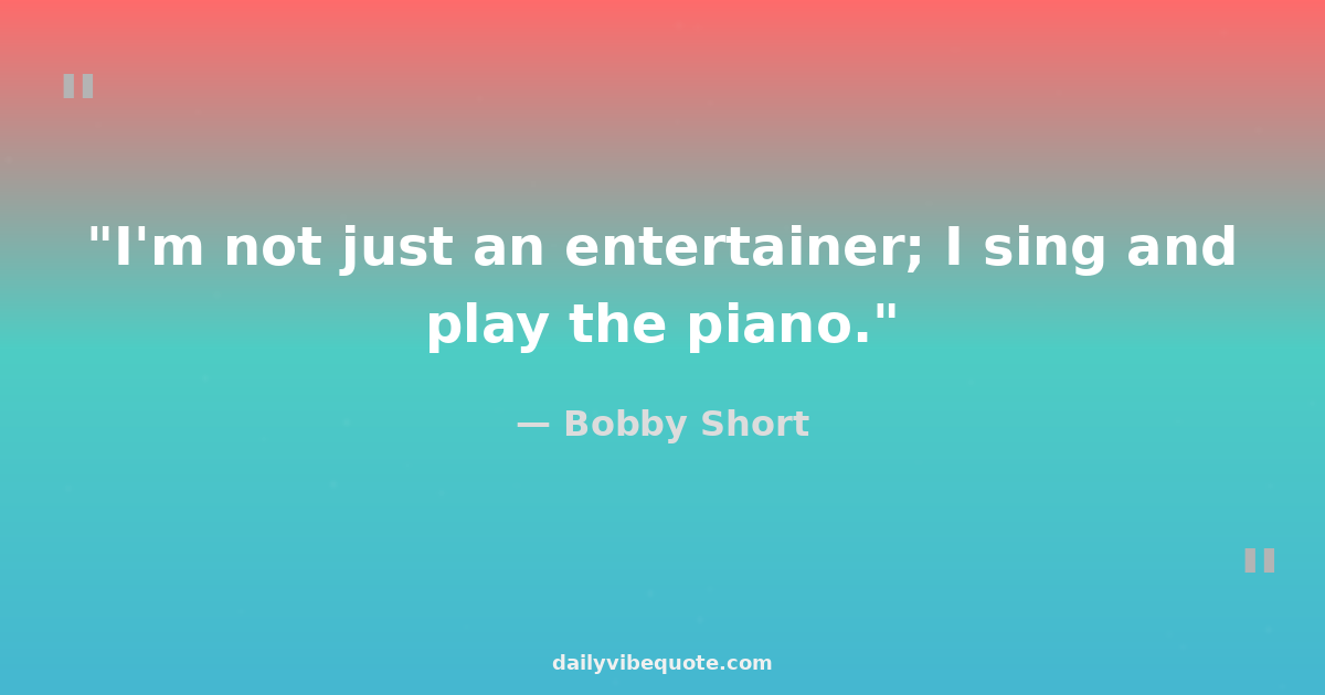 Bobby Short was an American cabaret singer and pianist known for his performances at the Cafe Carlyle in New York City. With his suave style and charismatic stage presence, Short became a beloved fixture in the New York nightlife scene during the mid-20th century. He was renowned for his interpretations of classic American songs from the Great American Songbook and his collaborations with renowned artists such as Lena Horne and Duke Ellington.