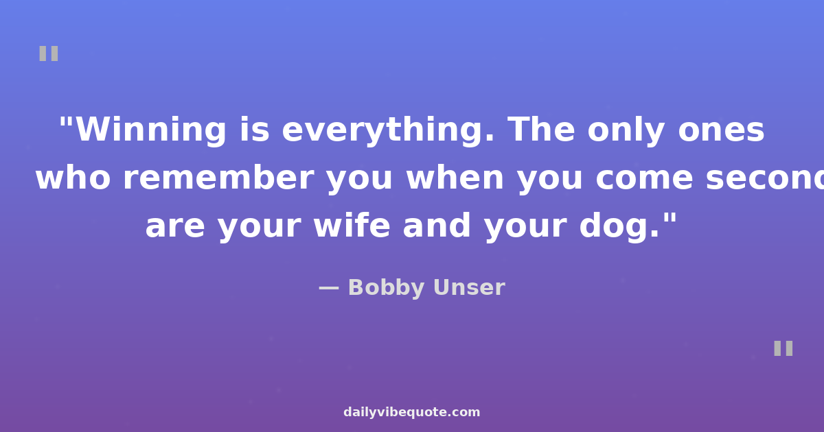 "Winning is everything. The only ones who remember you when you come second are your wife and your dog."