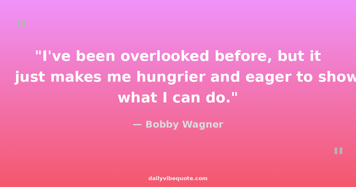 "I've been overlooked before, but it just makes me hungrier and eager to show what I can do."
