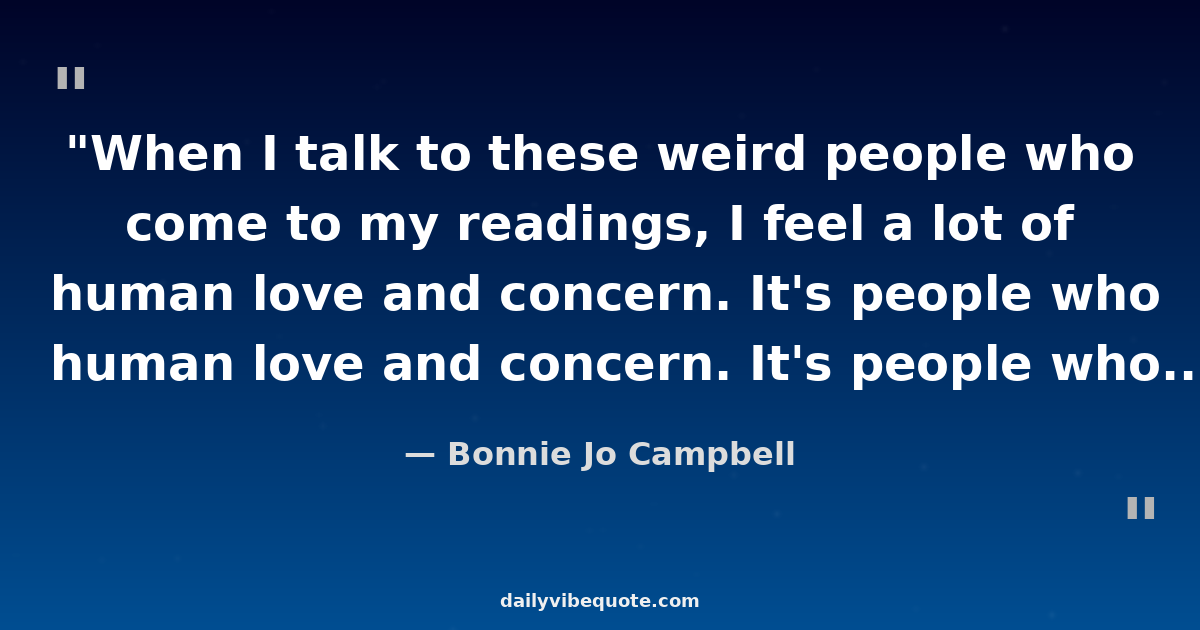 "When I talk to these weird people who come to my readings, I feel a lot of human love and concern. It's people who make donations to society who are the most interesting to me."