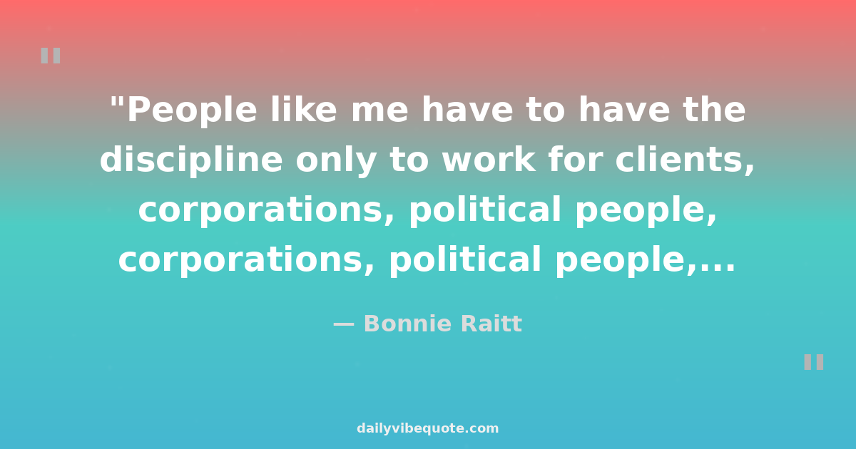 "People like me have to have the discipline only to work for clients, corporations, political people, products, services, networks that we believe in and we want to see succeed."