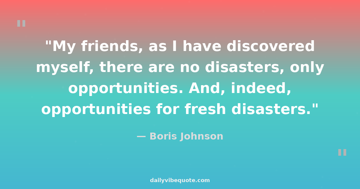 "My friends, as I have discovered myself, there are no disasters, only opportunities. And, indeed, opportunities for fresh disasters."