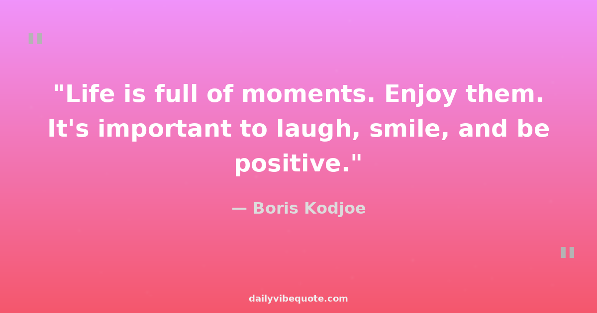 "Life is full of moments. Enjoy them. It's important to laugh, smile, and be positive."