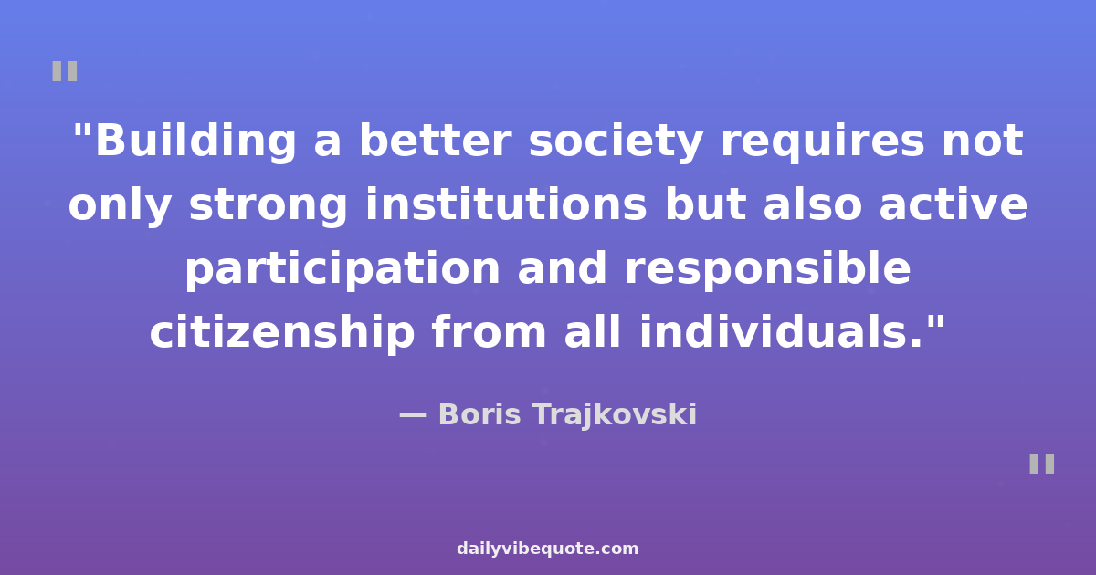 "Building a better society requires not only strong institutions but also active participation and responsible citizenship from all individuals."