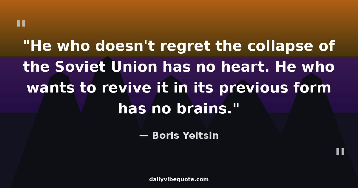 "He who doesn't regret the collapse of the Soviet Union has no heart. He who wants to revive it in its previous form has no brains."