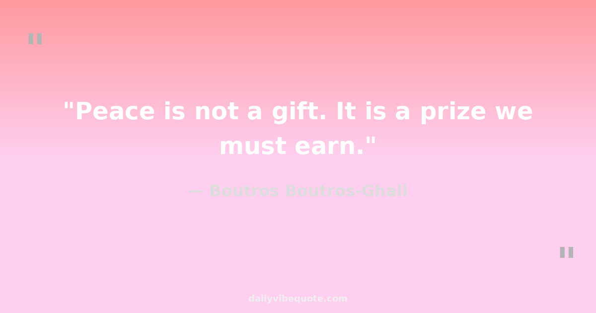 "Peace is not a gift. It is a prize we must earn."