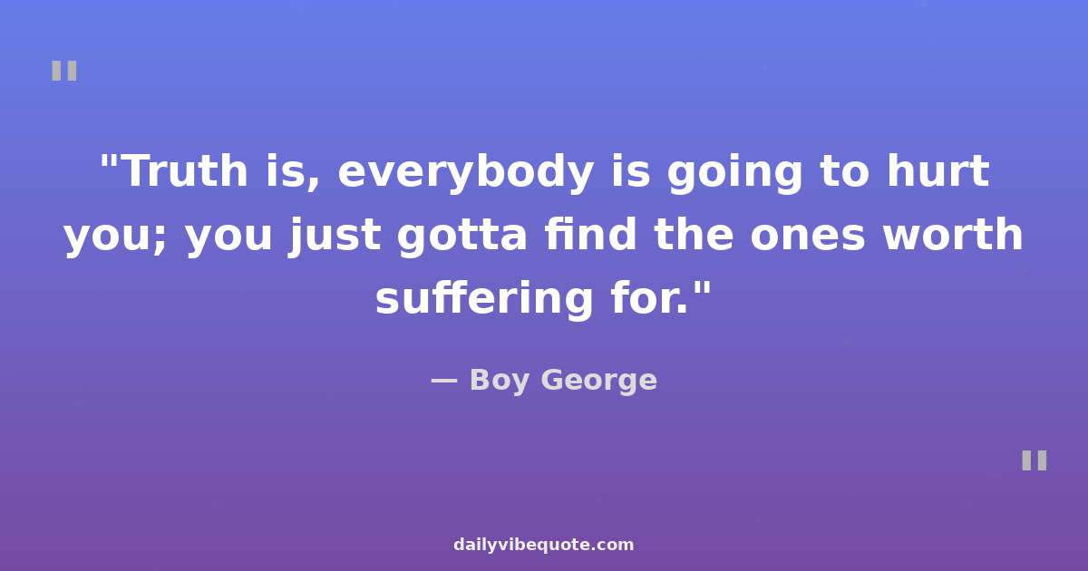 "Truth is, everybody is going to hurt you; you just gotta find the ones worth suffering for."