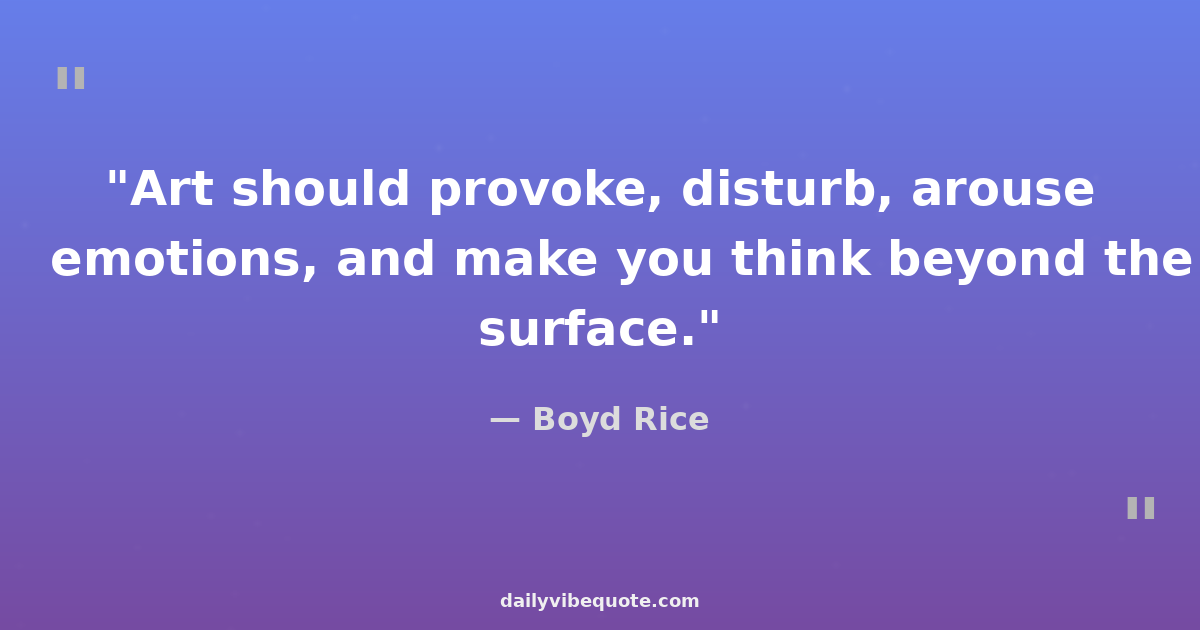 "Art should provoke, disturb, arouse emotions, and make you think beyond the surface."