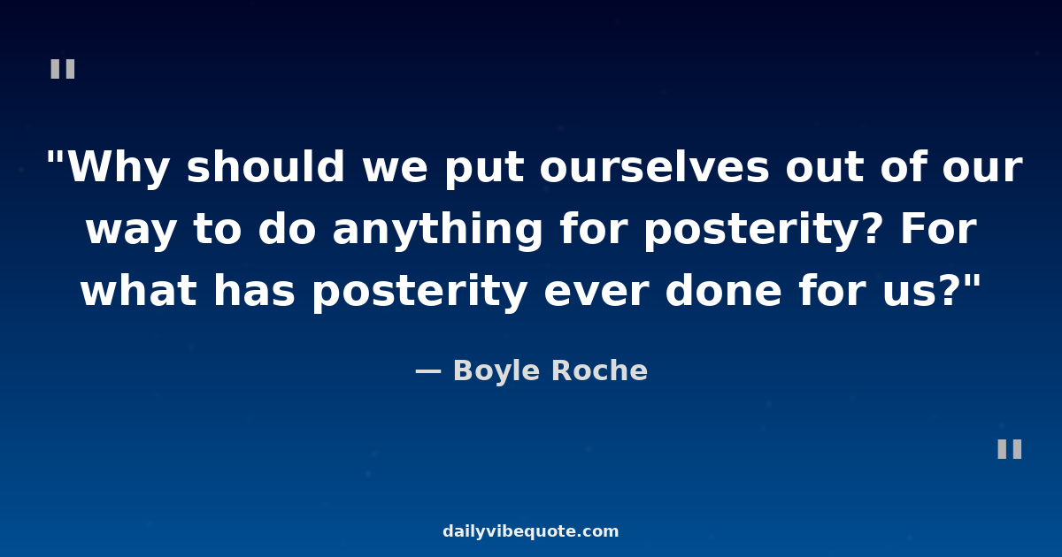 "Why should we put ourselves out of our way to do anything for posterity? For what has posterity ever done for us?"
