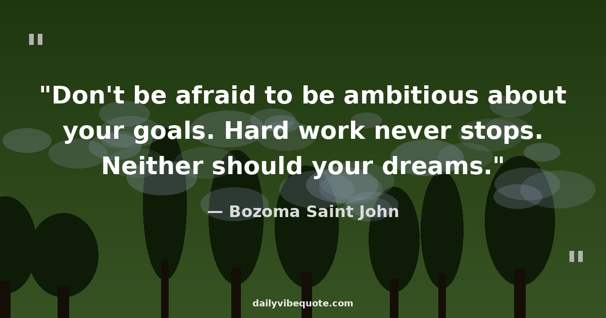 "Don't be afraid to be ambitious about your goals. Hard work never stops. Neither should your dreams."