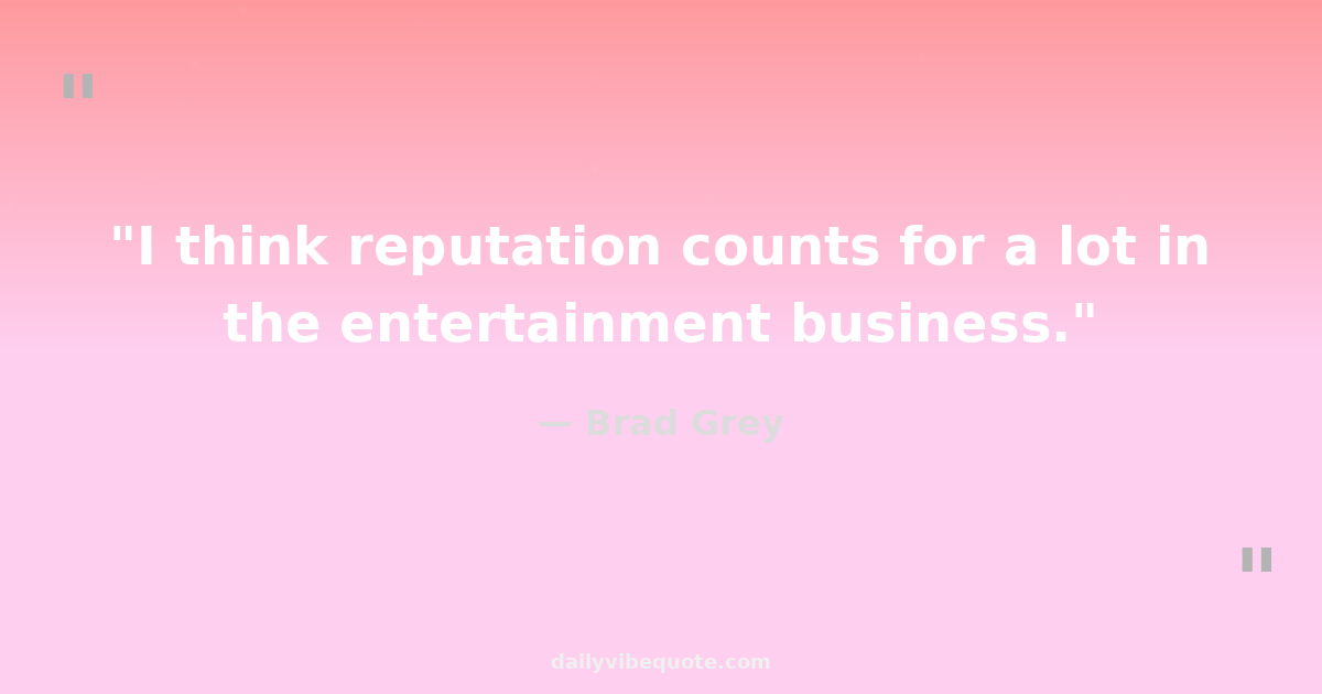 "I think reputation counts for a lot in the entertainment business."