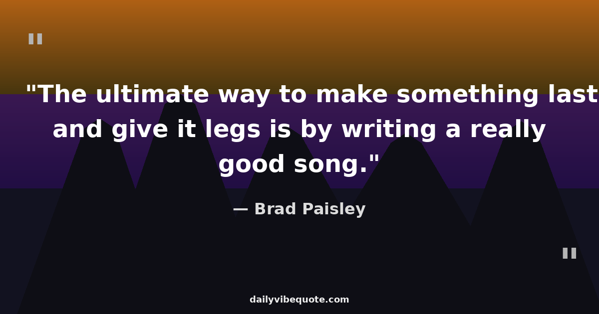 "The ultimate way to make something last and give it legs is by writing a really good song."
