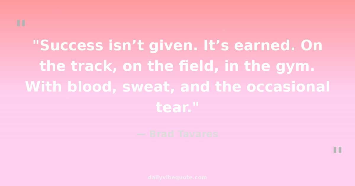 "Success isn’t given, it’s earned. On the track, on the field, in the gym. With blood, sweat, and the occasional tear."