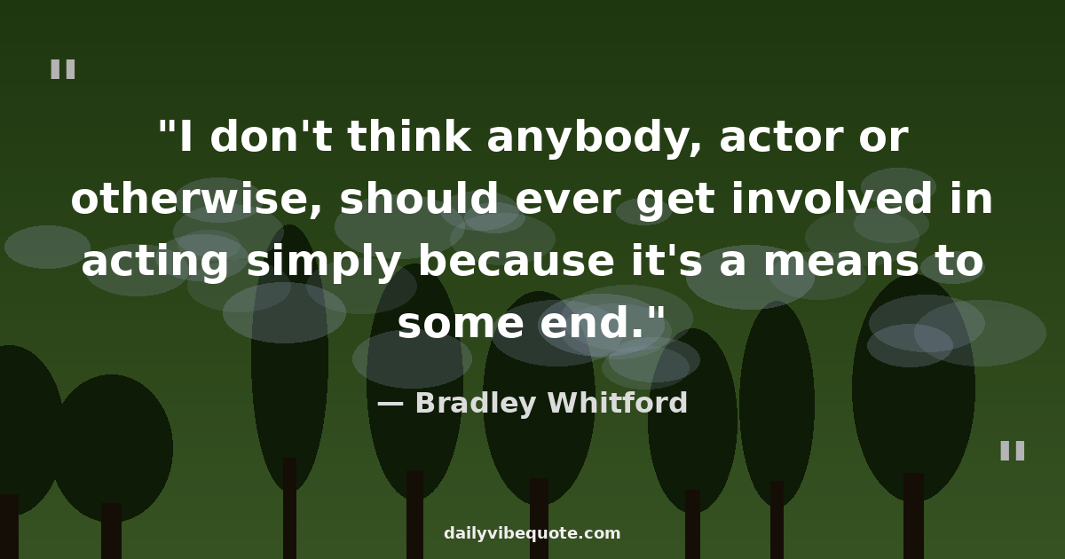 "I don't think anybody, actor or otherwise, should ever get involved in acting simply because it's a means to some end."