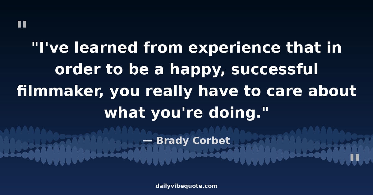 "I've learned from experience that in order to be a happy, successful filmmaker, you really have to care about what you're doing."