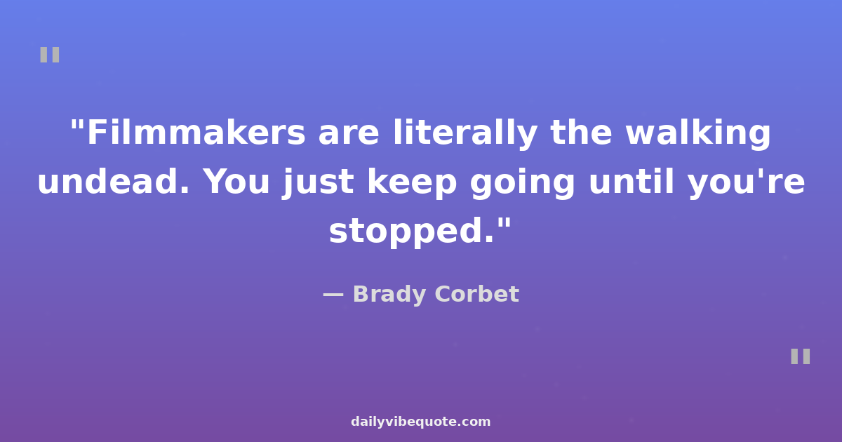 "Filmmakers are literally the walking undead. You just keep going until you're stopped."