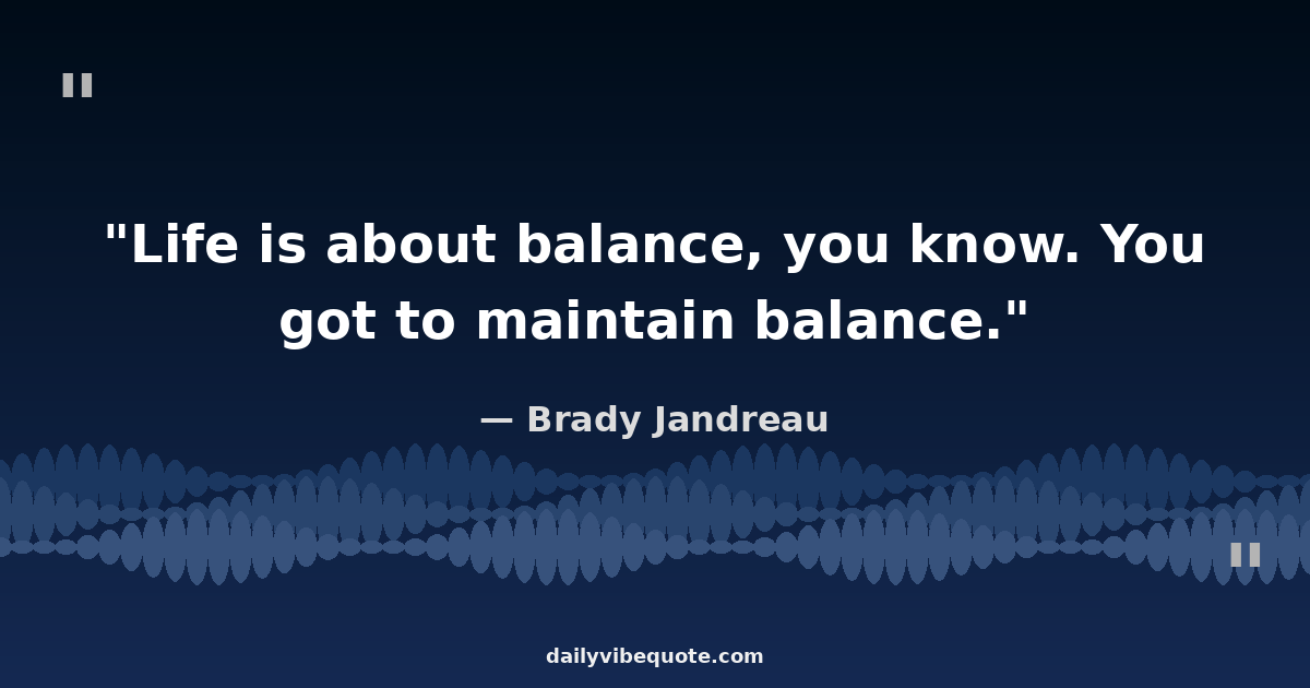 "Life is about balance, you know. You got to maintain balance."