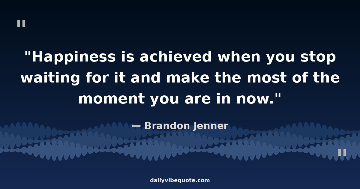 "Happiness is achieved when you stop waiting for it and make the most of the moment you are in now."