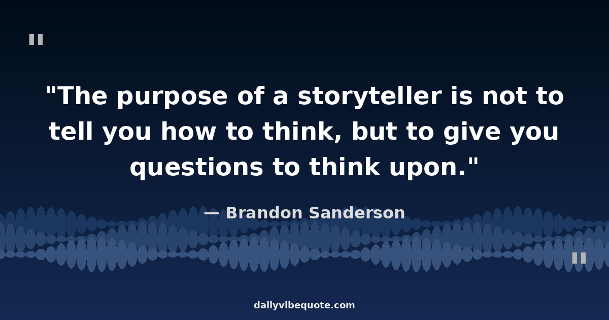 "The purpose of a storyteller is not to tell you how to think, but to give you questions to think upon."