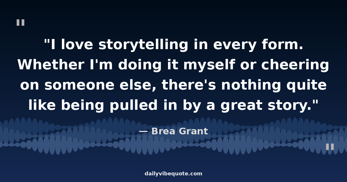 "I love storytelling in every form. Whether I'm doing it myself or cheering on someone else, there's nothing quite like being pulled in by a great story."