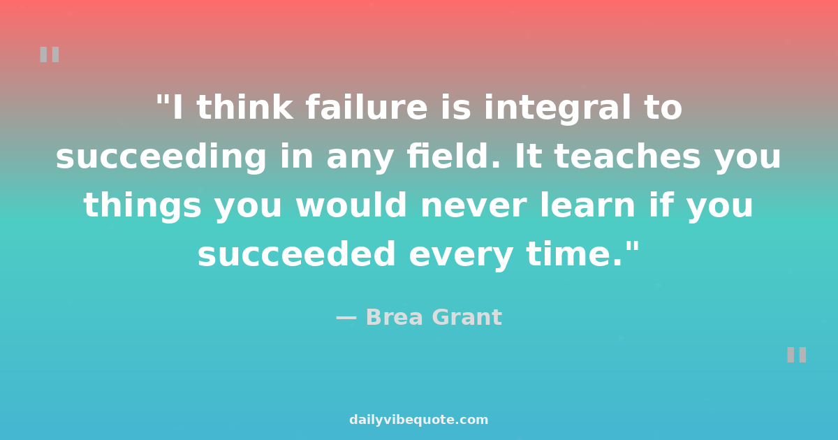 "I think failure is integral to succeeding in any field. It teaches you things you would never learn if you succeeded every time."