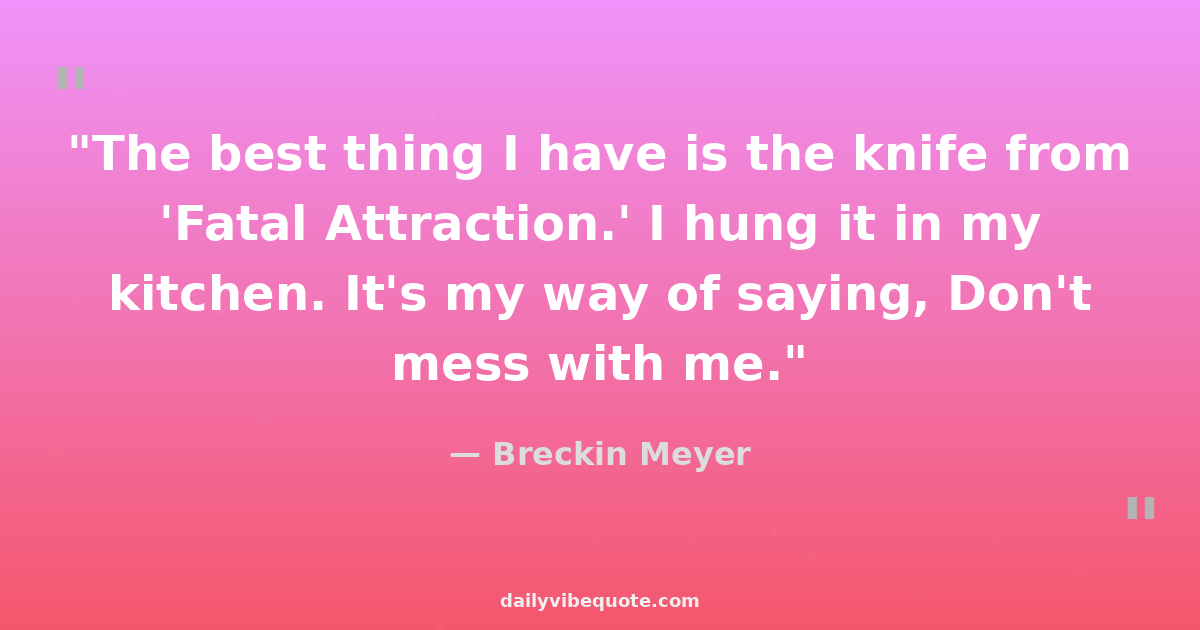 "The best thing I have is the knife from 'Fatal Attraction.' I hung it in my kitchen. It's my way of saying, Don't mess with me."