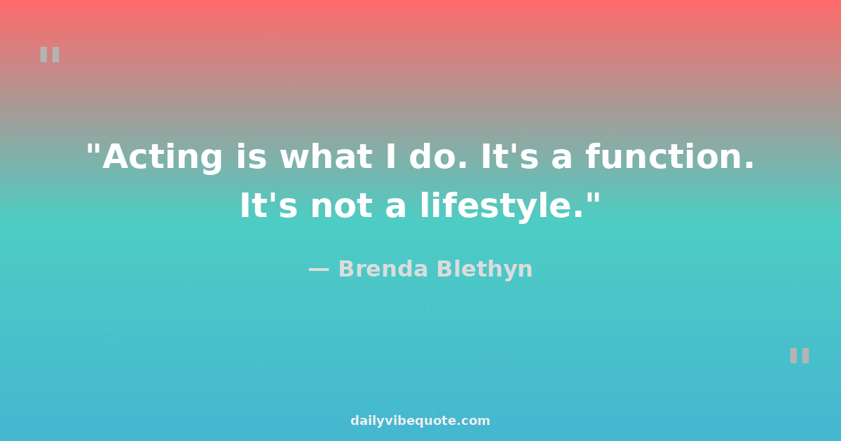 "Acting is what I do. It's a function. It's not a lifestyle."