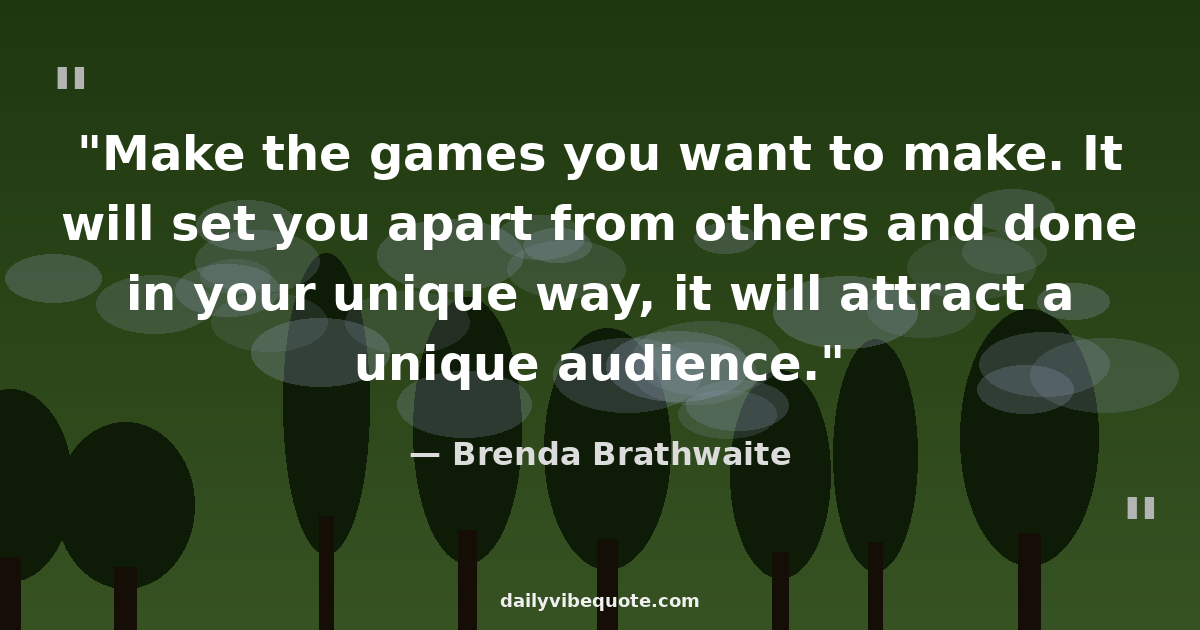 "Make the games you want to make. It will set you apart from others and done in your unique way, it will attract a unique audience."