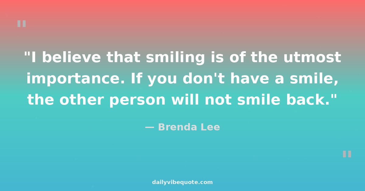 "I believe that smiling is of the utmost importance. If you don't have a smile, the other person will not smile back."