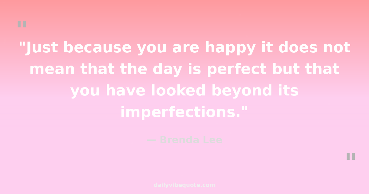 "Just because you are happy it does not mean that the day is perfect but that you have looked beyond its imperfections."