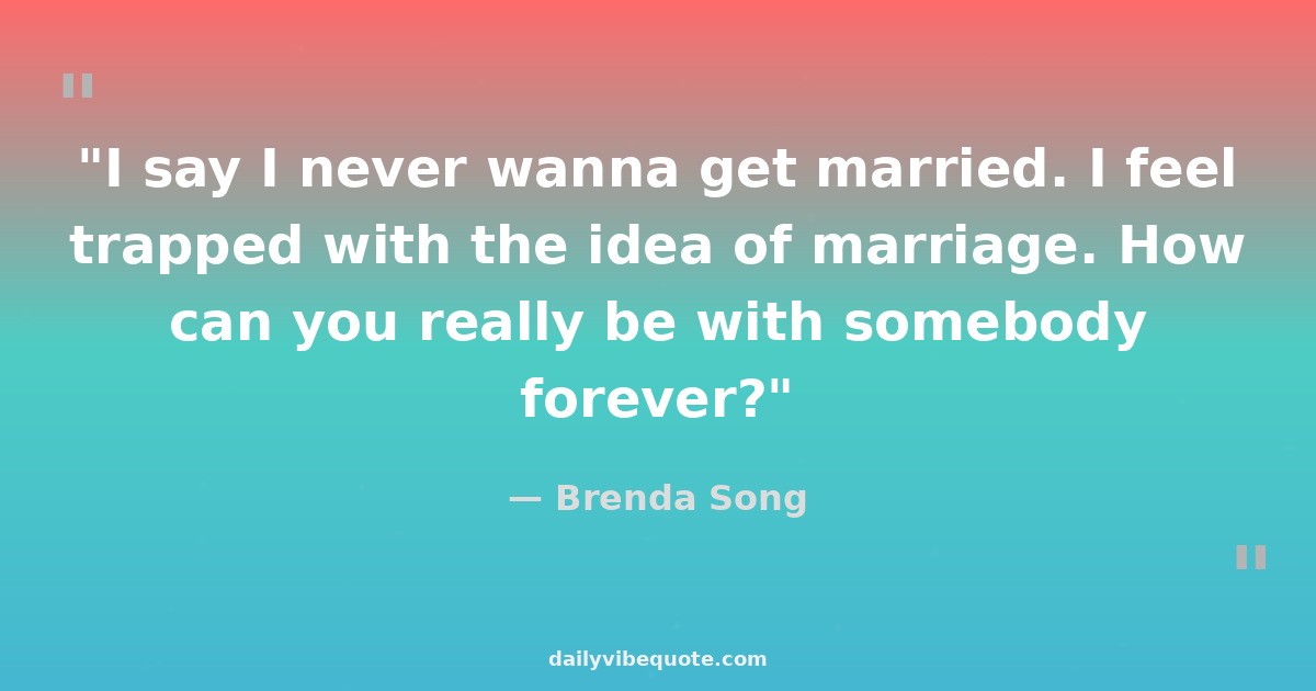 "I say I never wanna get married. I feel trapped with the idea of marriage. How can you really be with somebody forever?"