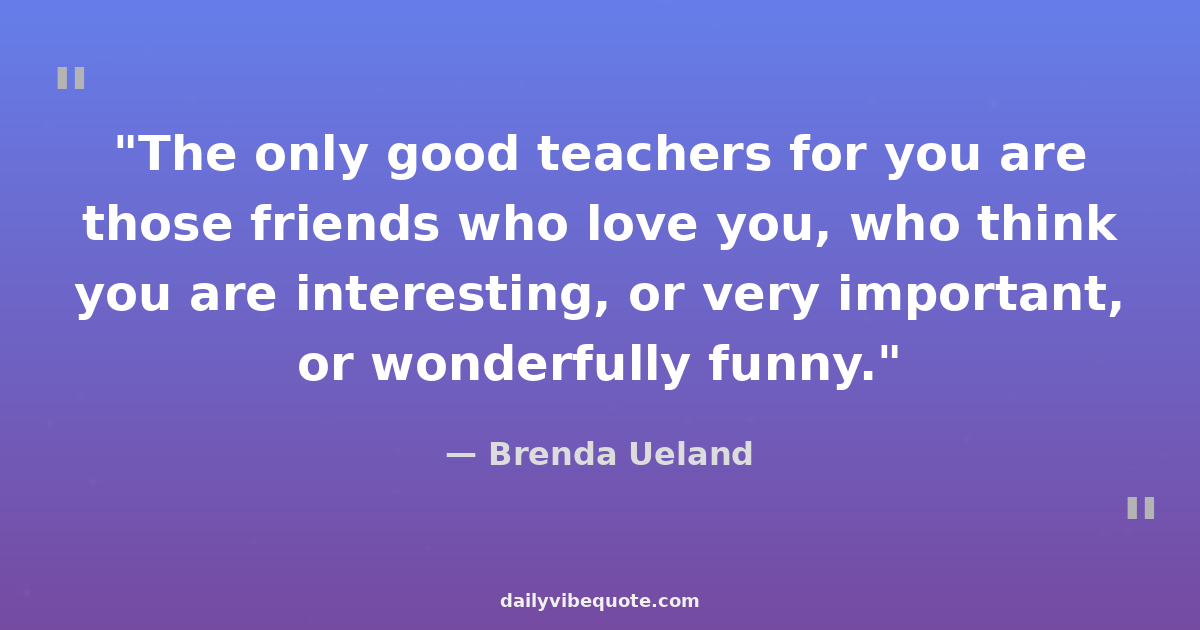 "The only good teachers for you are those friends who love you, who think you are interesting, or very important, or wonderfully funny."
